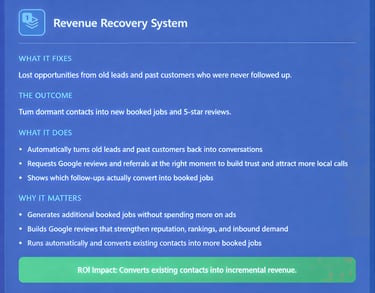 Reactivates old leads and past customers to turn overlooked contacts into booked jobs and revenue.